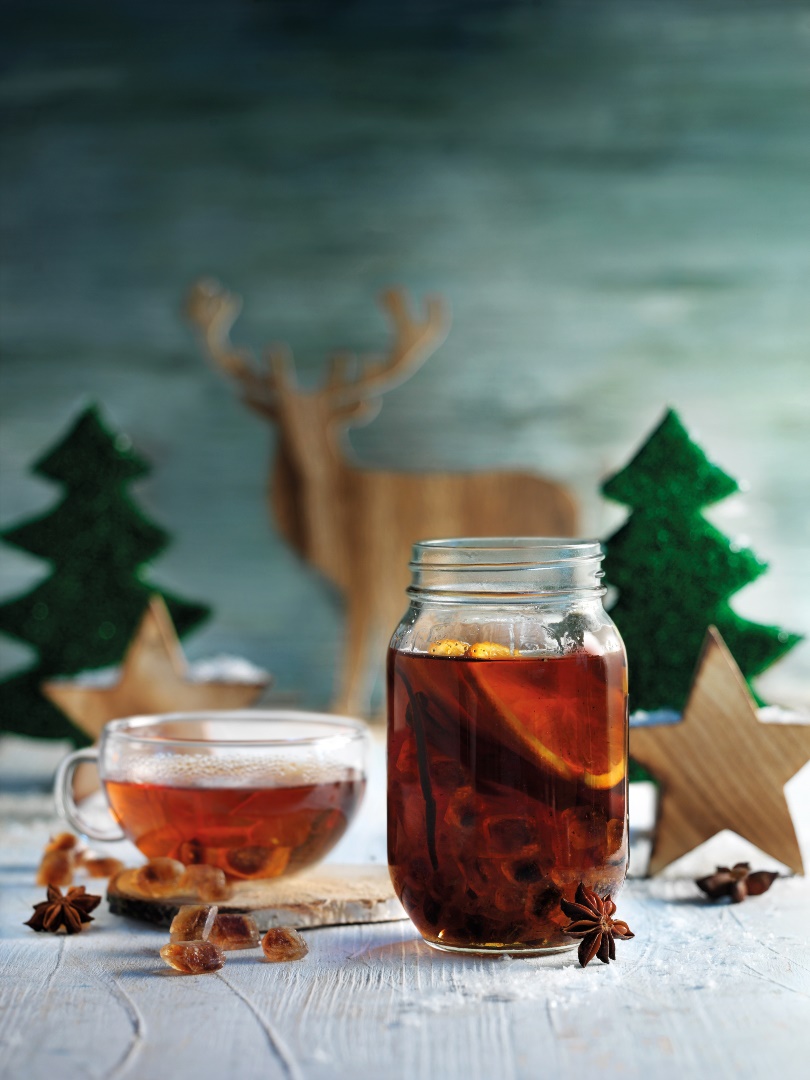Etwas köstlicher Rum-Kandis mit Wintergewürzen verfeinert den Tee zu einem aromatischen, winterlichen Genuss.