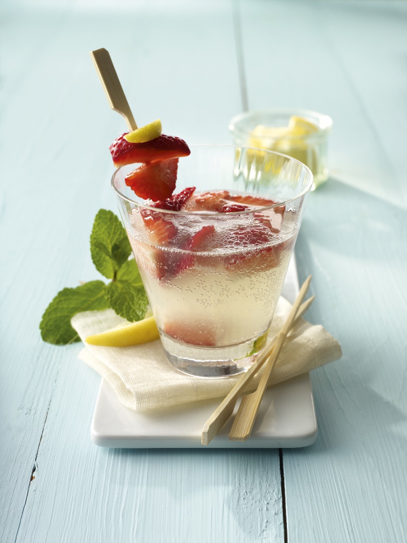 Kühl in Gläsern servieren und nach Belieben mit Erdbeeren und Minze dekorieren.